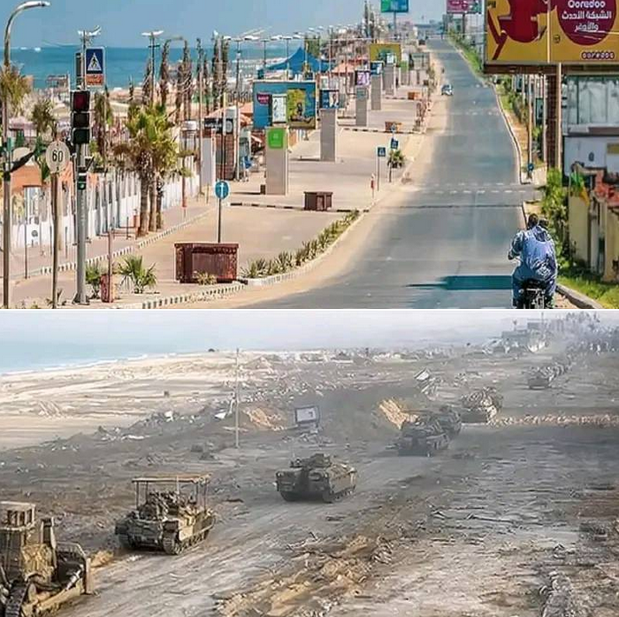 Invasão Israelita Avenida A-Rashid Em Gaza, Antes E Depois Da Invasão Israelita à(s) : fevereiro 29, 2024 0 Comentários Print This Post Partilhar em Facebook Partilhar em Twitter Avenida A-Rashid em Gaza, na primeira imagem é de 2022 a mesma avenida agora em após a invasão Israelita 2024.Vale salientar que a cada hora morrem em Gaza 6 crianças e muita delas ficam sem membros.‼️